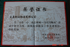 2008年7月25日,我公司被太原市委統(tǒng)戰(zhàn)部授予“統(tǒng)戰(zhàn)系統(tǒng)抗震救災(zāi)先進(jìn)單位”榮譽(yù)稱號(hào)。